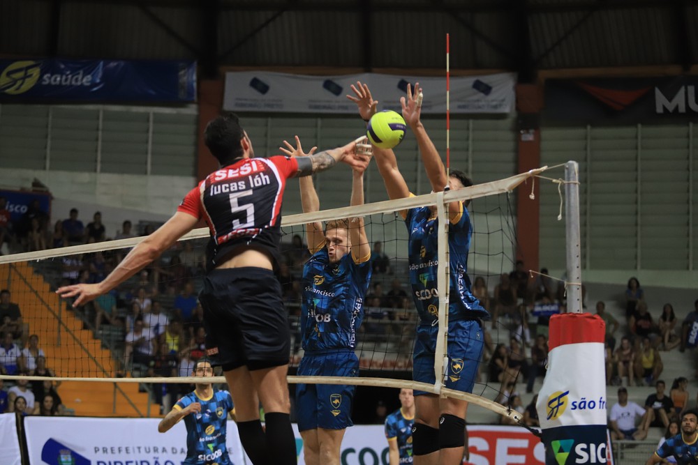O time masculino de vôlei do Sesi-SP foi até Ribeirão Preto na noite desta terça-feira (17) e venceu o Vôlei Ribeirão por 3 sets a 0 (25/21, 25/22 e 27/25). No confronto válido pela quarta rodada do Campeonato Paulista 2019, os comandados do técnico Rubinho garantiram mais uma vitória jogando na Cava do Bosque, e mantem invencibilidade.