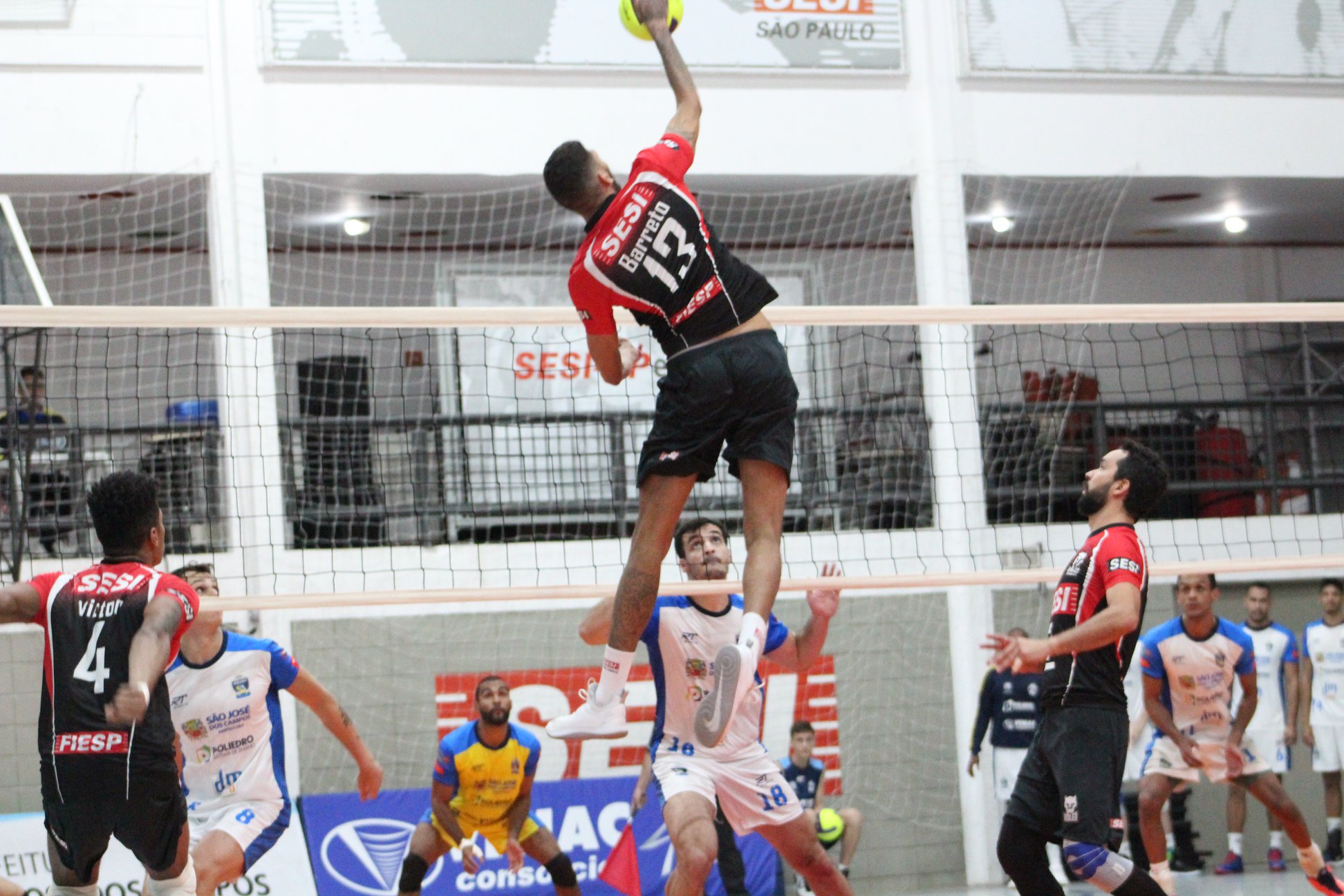 O time masculino de vôlei do Sesi-SP abriu a série das quartas de final do Campeonato Paulista 2019 com vitória. Jogando em São José dos Campos na noite desta terça-feira (8), os comandados do técnico Rubinho foram superiores e venceram os donos da casa por 3 sets a 1 (22/25, 25/23, 23/25 e 19/25).