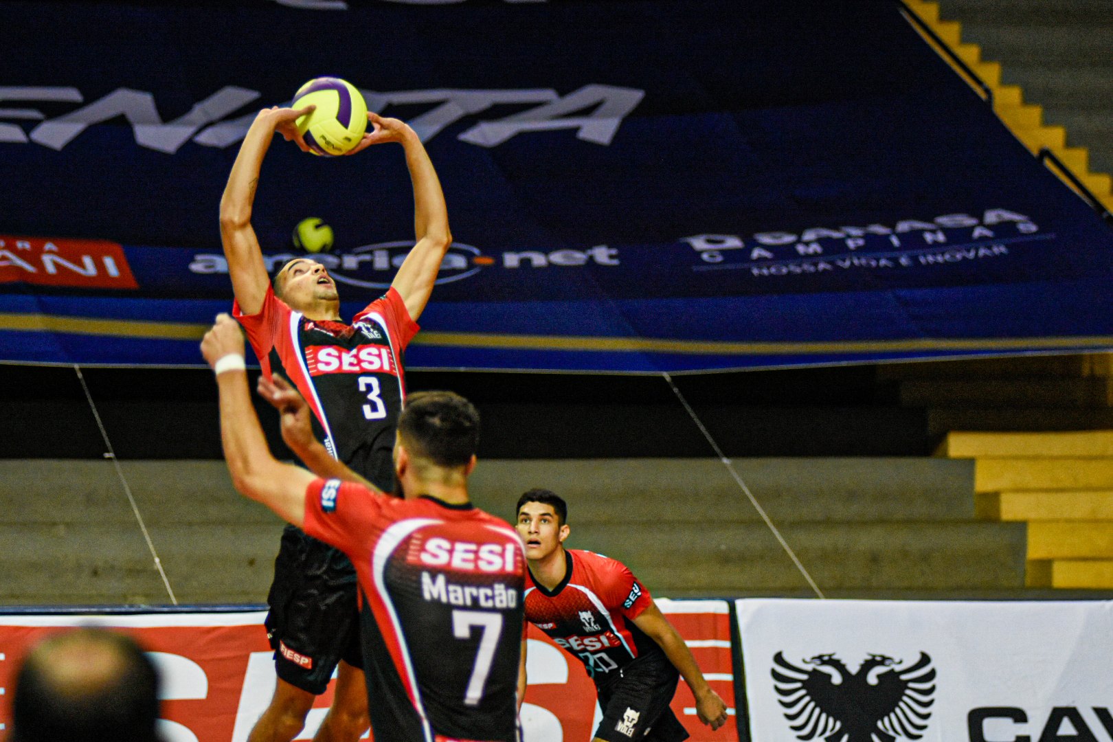 Os meninos da capital paulista abriram o marcador da partida com um ataque potente do ponteiro Nathan, sofreram com a precisão no ataque adversário com Vissotto e Vacari, o levantador Caio deu lugar ao Ryan, e voltaram a responder a altura com bloqueio do central Marcão. Mesmo atrás no primeiro set, o Sesi-SP se recuperou, buscou o empate na parcial seguinte e com ace do capitão Alan Maciel “Índio”, igualou o marcador.
