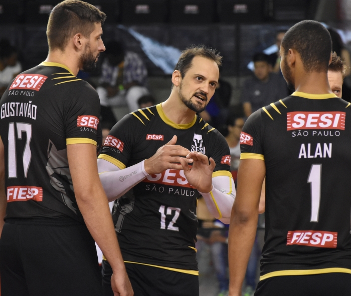 O Sesi-SP, que entrou em quadra com o levantador William, o oposto Alan, os centrais Lucão e Gustavão, os ponteiros Douglas Souza e Lipe e o líbero Pureza, enfrenta o Corinthians/Guarulhos nas quartas de final da Superliga masculina 2017/18.